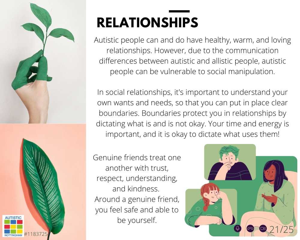 Autistic people can and do have healthy, warm, and loving relationships. However, due to the communication differences between autistic and allistic people, autistic people can be vulnerable to social manipulation.