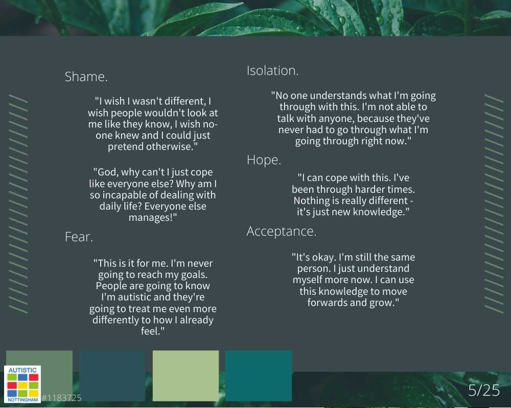 Denial. “I’m not autistic – I’ve seen on TV what autism is, and I’m not like that.”