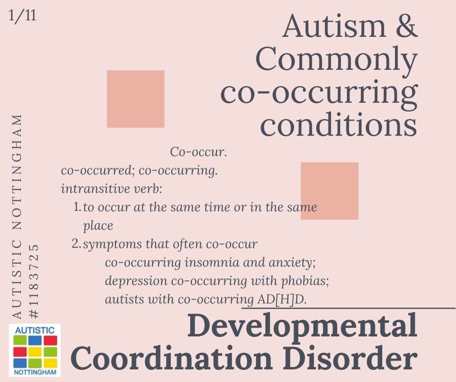 Developmental Co-ordination Disorder Posted byautisticnottinghamOctober 9, 2020March 8, 2023Posted inHealth Care, Mental Health, Sensory & Synaesthesia Share this: Click to share on X (Opens in new window) X Click to share on Facebook (Opens in new window) Facebook Like Loading... Related