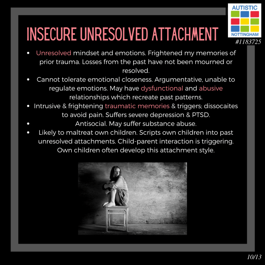 Knowing Thyself I: Attachment Styles Posted byautisticnottinghamOctober 9, 2020March 8, 2023Posted inRelationshipsTags:actuallyautistic, aspergers, attachmenttheory, autism, autisticadult, autisticnottingham Share this: Click to share on X (Opens in new window) X Click to share on Facebook (Opens in new window) Facebook Like Loading... Related