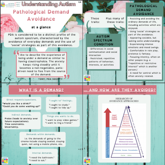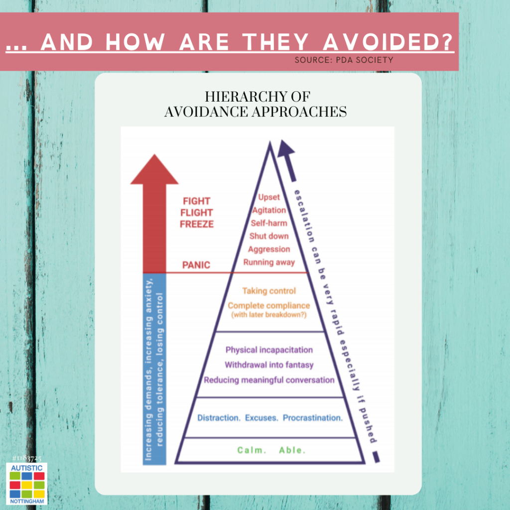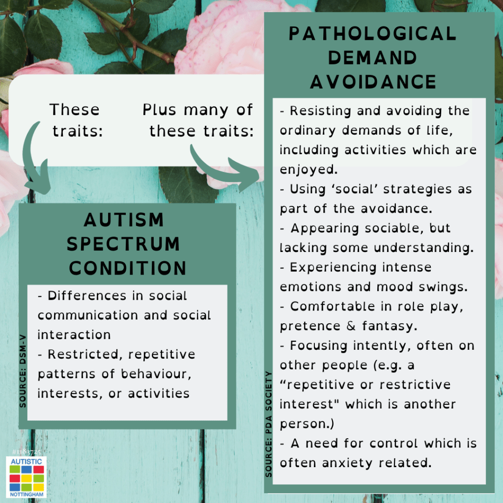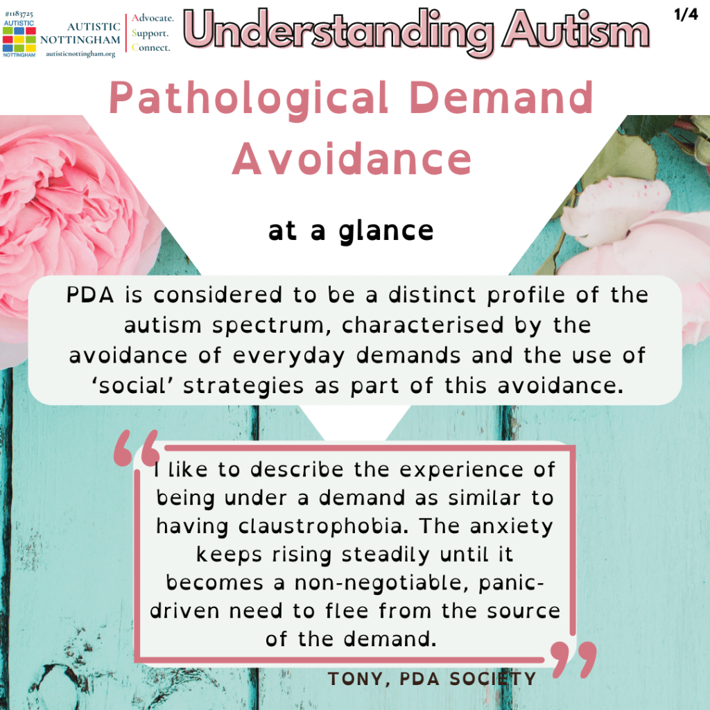 “PDA is considered to be a distinct profile of the autism spectrum, characterised by the avoidance of everyday demands and the use of ‘social’ strategies as part of this avoidance.”
