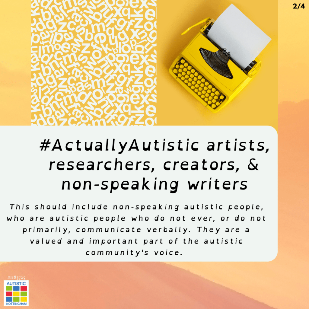This should include non-speaking autistic people, who are autistic people who do not ever, or do not primarily, communicate verbally. They are a valued and important part of the autistic community’s voice.
