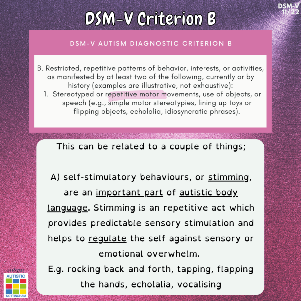 Autistic people engage in stimming with a self-regulatory purpose to prevent sensory or emotional overwhelm, and often engage with deep focus in a topic of passion.