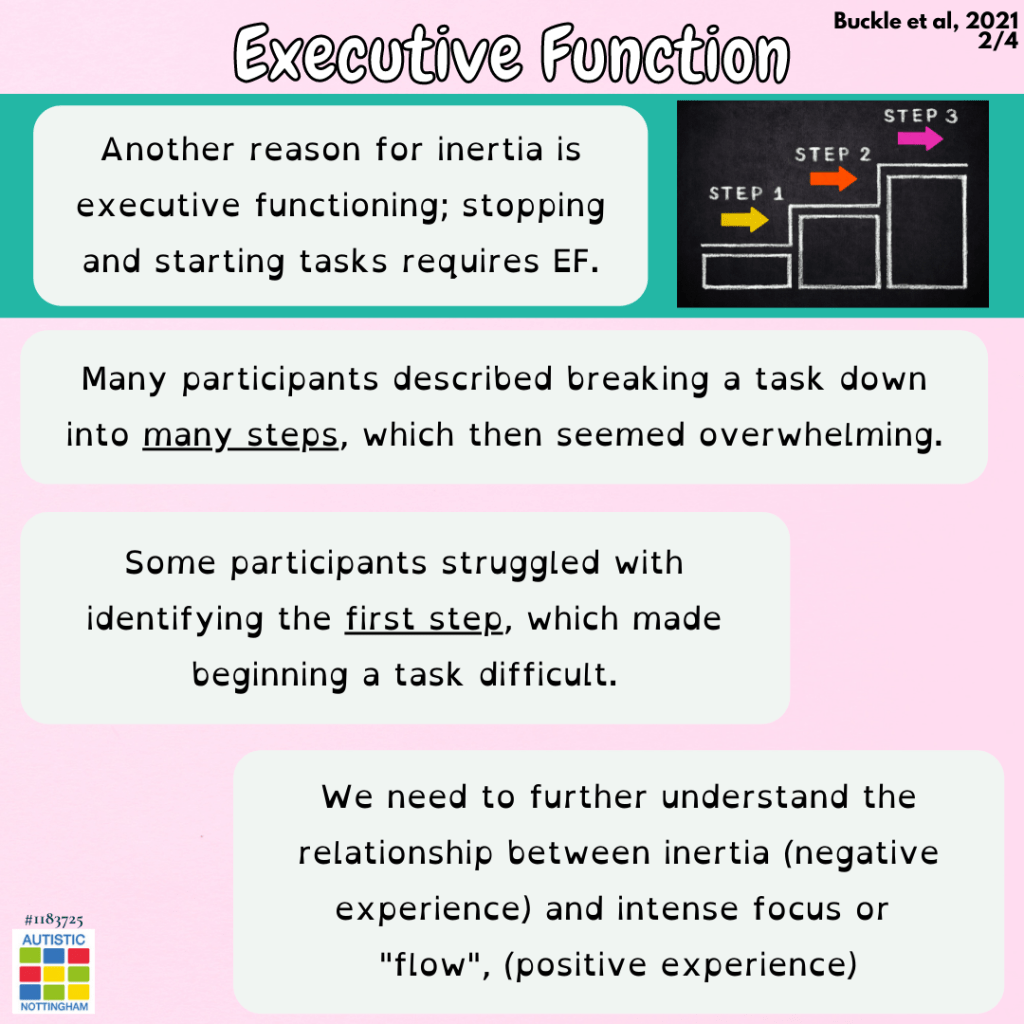 Another reason for inertia is executive functioning; stopping and starting tasks requires EF.