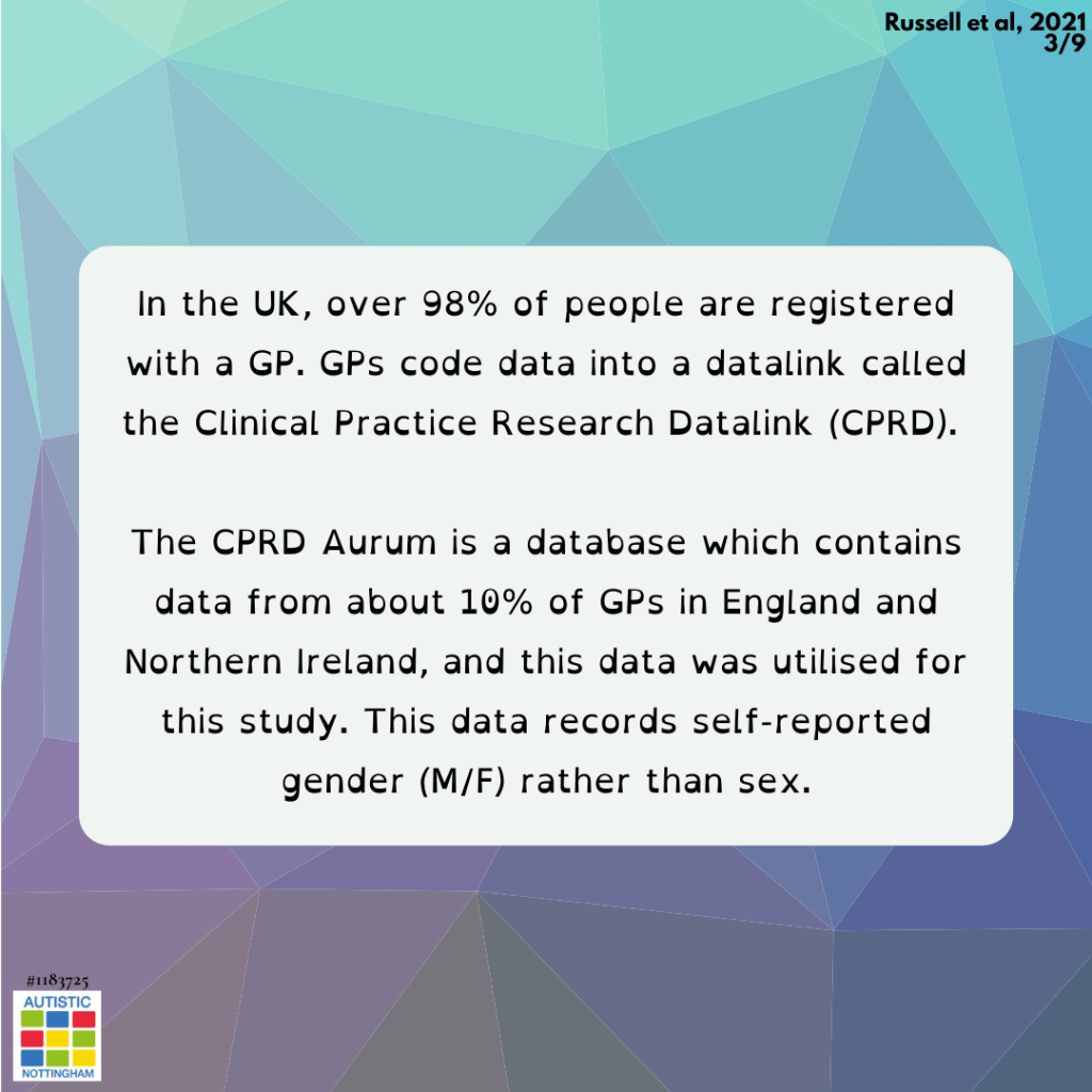 In the UK, over 98% of people are registered with a GP. GPs code data into a datalink called the Clinical Practice Research Datalink (CPRD).
