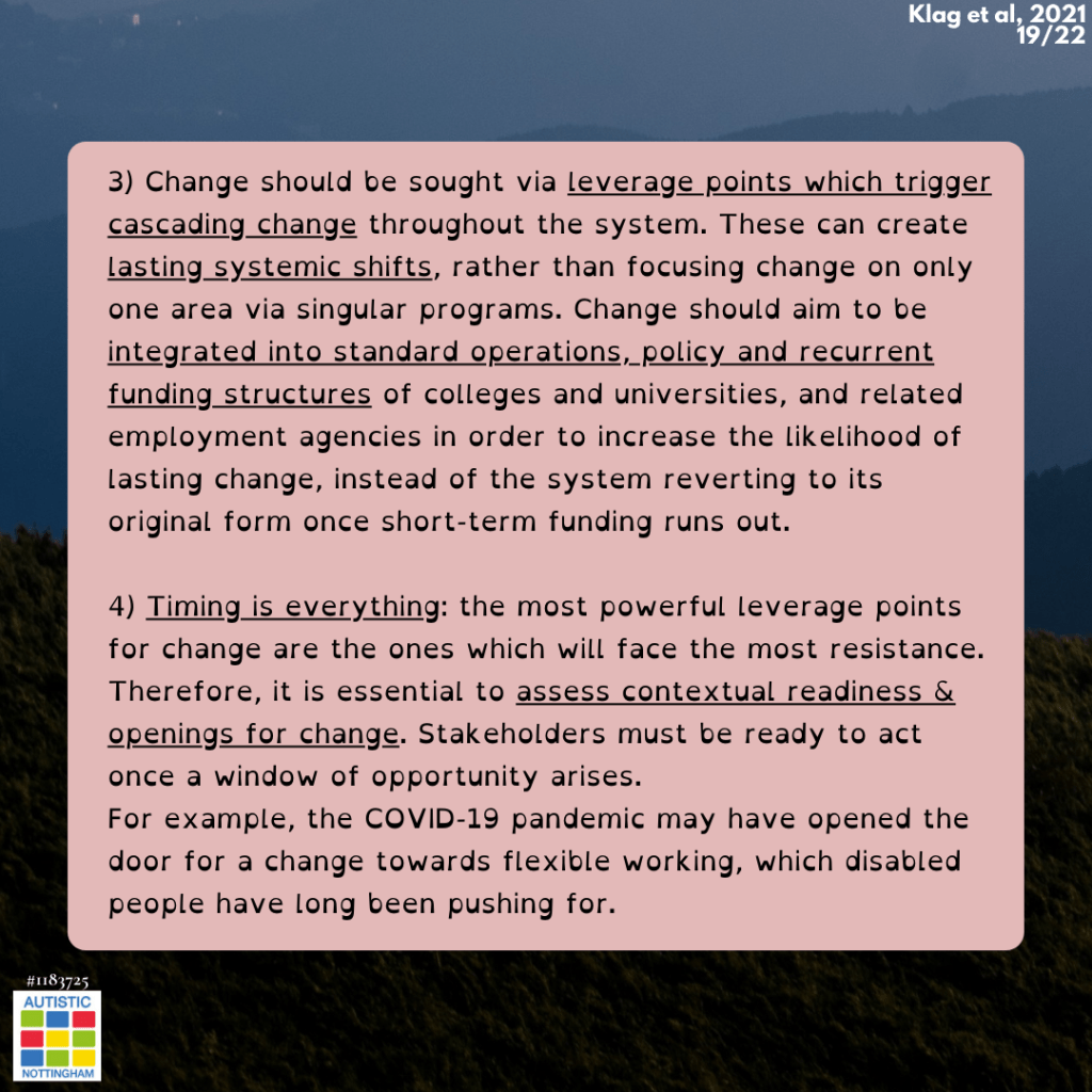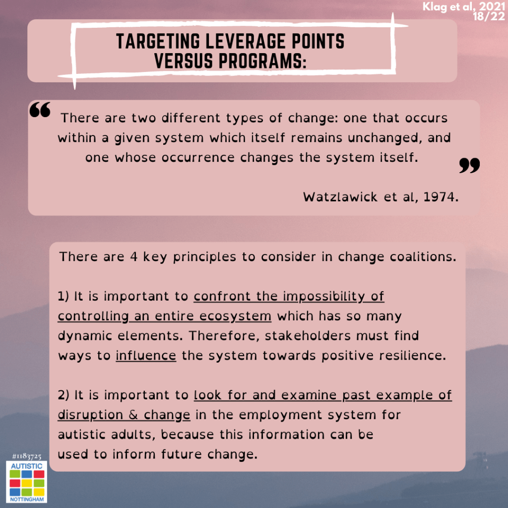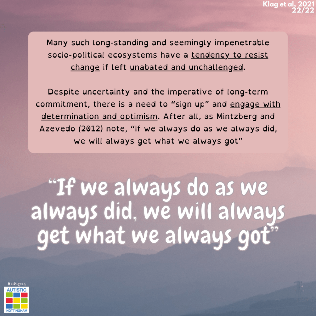- Nothing about us without us: ensure a change coalition is led by or fully integrates autistic people
