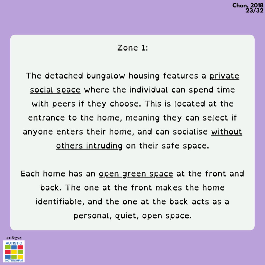 The home has powerful physical, psychological, emotional, & spiritual significance. Autistic people often feel that their home is their “sanctuary”, the one place they have control over. Autistic peoples wellbeing is significantly impacted by their home & neighbourhood.
