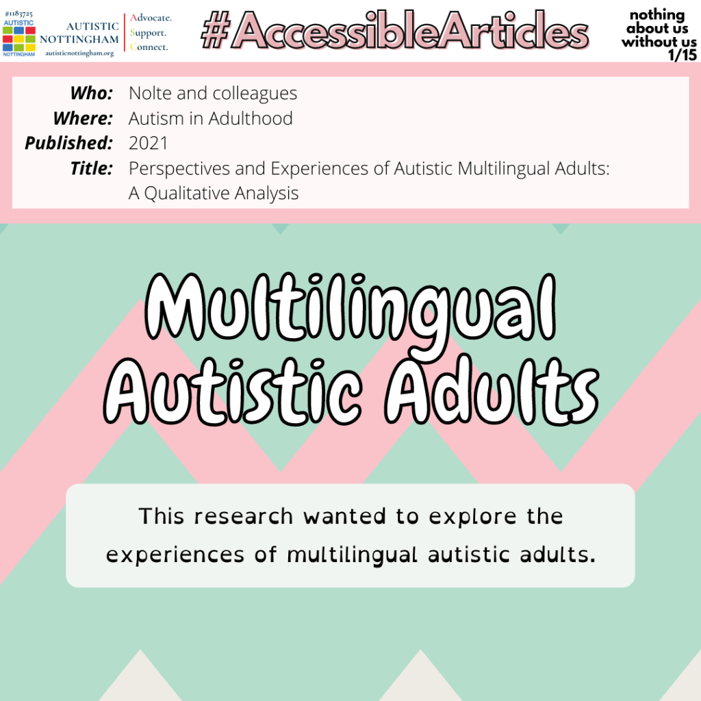 There is little to no research on the experiences of multilingual autistic adults, so this research wanted to explore their experiences.