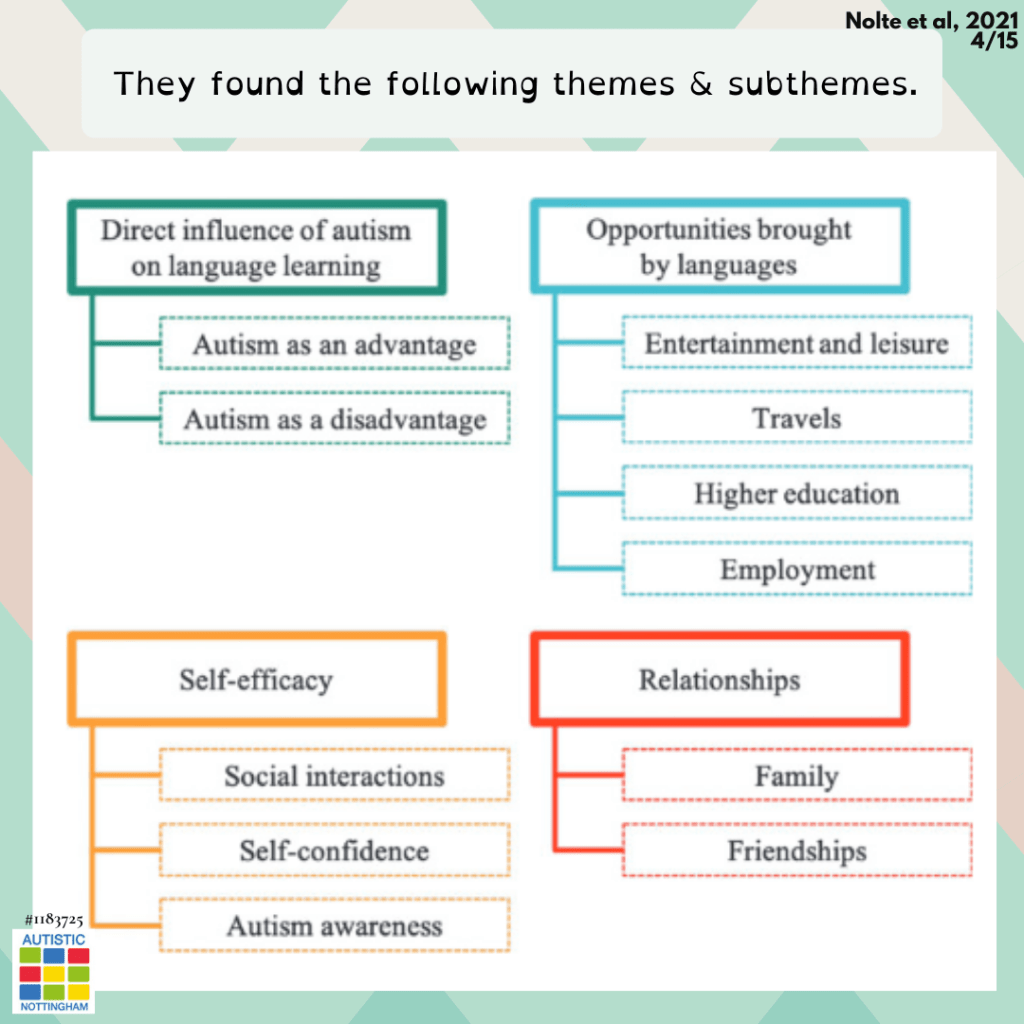 They found that having languages as a special interest made them very easy to focus on and learn, although this was also a disadvantage when it came to learning languages that they did not find interesting.