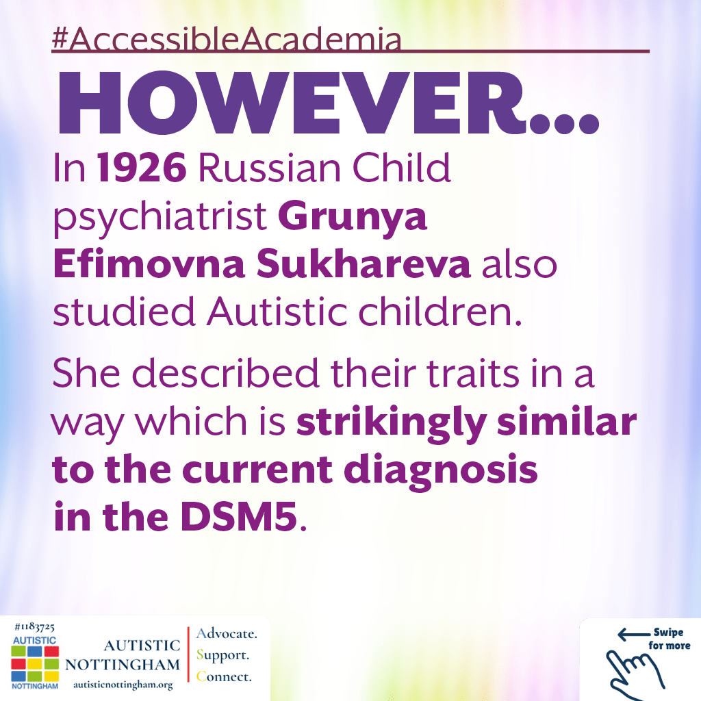 Sukhareva described Autism as an innate difference with possible Neurological origins.