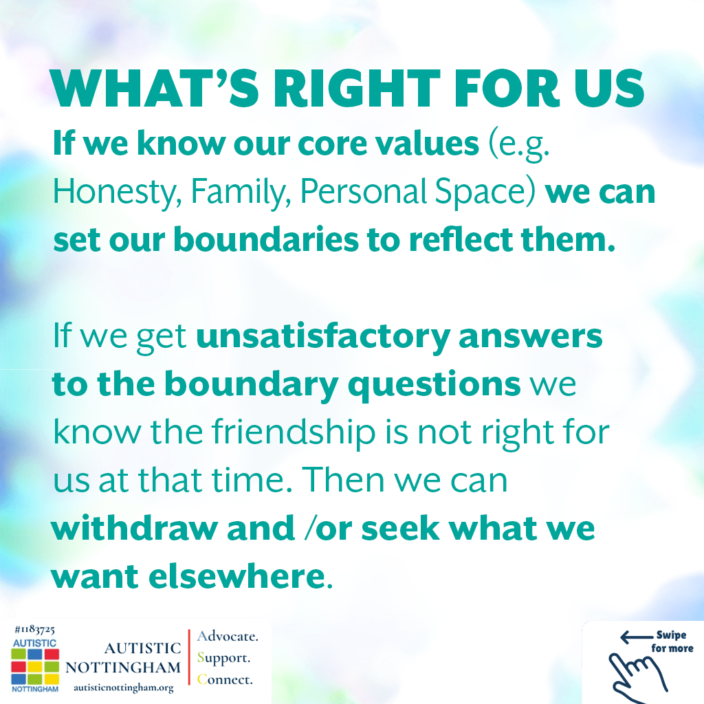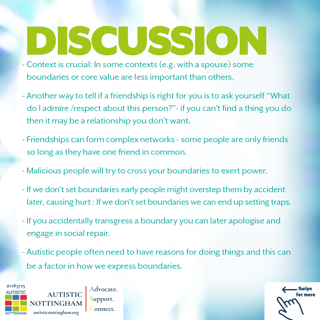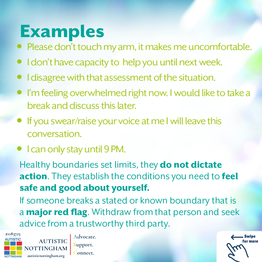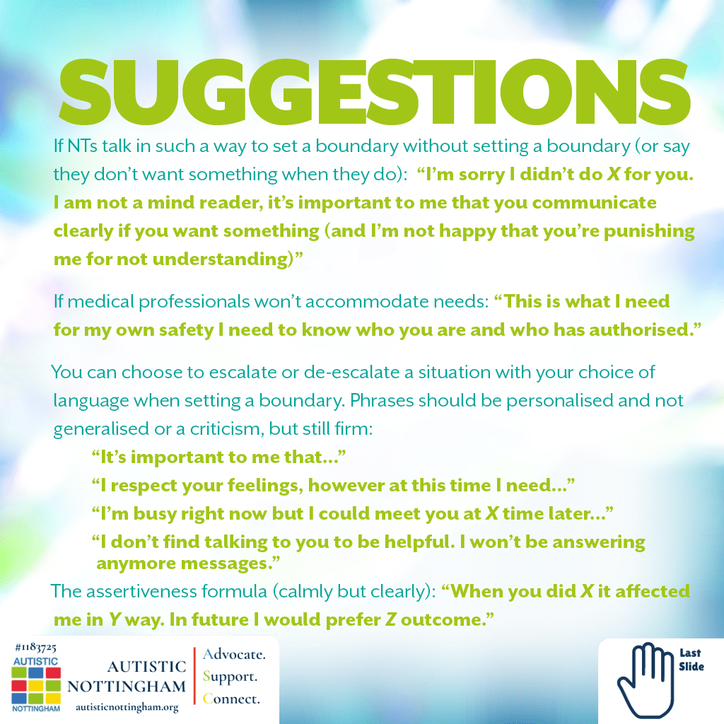 - Autistic people often need to have reasons for doing things and this can be a factor in how we express boundaries.